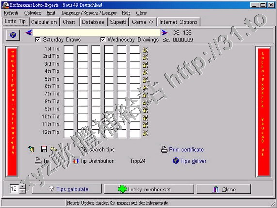 • Hoffmann Lotto-Experte 6 aus 49 v3.2.0.32 英文正式版(彩票選號助手軟體)